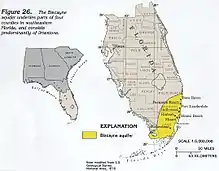 The Biscayne Aquifer, named after Biscayne Bay, is a surficial aquifer. It is a shallow layer of highly permeable limestone under a portion of South Florida. The area it underlies includes Broward County, Miami-Dade County, Monroe County, and Palm Beach County, a total of about 4,000 square miles (10,000 km2).[1]