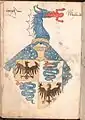 Coat of arms of the Sforza and Caravaggio houses, as in the German-language book Wernigeroder (Schaffhausensches) Wappenbuch.
