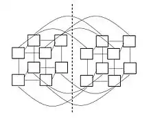 Theoretical support for the importance of this measure of network performance was developed in the PhD research of Clark Thomborson (formerly Clark Thompson).[3] Thomborson proved that important algorithms for sorting, Fast Fourier transformation, and matrix-matrix multiplication become communication-limited—as opposed to CPU-limited or memory-limited—on computers with insufficient bisection width. F. Thomson Leighton's PhD research[4] tightened Thomborson's loose bound [5] on the bisection width of a computationally-important variant of the De Bruijn graph known as the shuffle-exchange network. Based on Bill Dally's analysis of latency, average case throughput, and hot-spot throughput of m-ary n-cube networks[2] for various m, It can be observed that low-dimensional networks, in comparison to high-dimensional networks (e.g., binary n-cubes) with the same bisection width (e.g., tori), have reduced latency and higher hot-spot throughput.[6]