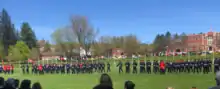 In 1901, the cadet corps took part in the Guard of Honour during the visit of Duke (later King George V) and Duchess of York to Sherbrooke. The Cader Corps was also inspected by the Duke of Devonshire, King Edward VIII in 1919, King George VI in 1939 and Queen Elizabeth The Queen Mother in 1962.[19] In May 1989, the school's annual cadet inspection was inspected by The Duke of Edinburgh with a crowd of two thousand people.[20] The Duke also granted the school's new coats of arms registered under the Royal Heraldry Society of Canada.[22]