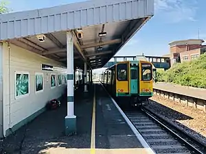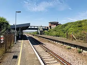 Bishopstone railway station is on the western side of the town of Seaford, East Sussex, England. It is situated close to the coast, and about 1 mile (1.6 km) from the downland rural village of Bishopstone after which it is named. Train services from the station are provided by Southern, and the station is on the Seaford Branch of the East Coastway Line, 58 miles 3 chains (93.4 km) measured from London Bridge.[1]
