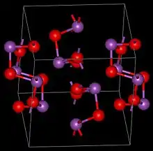 δ- Bi2O3 has a defective fluorite-type crystal structure in which two of the eight oxygen sites in the unit cell are vacant.[5] ε- Bi2O3 has a structure related to the α- and β- phases but as the structure is fully ordered it is an ionic insulator. It can be prepared by hydrothermal means and transforms to the α- phase at 400 °C.[4]