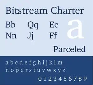 Bitstream Charter is a serif typeface designed by Matthew Carter in 1987 for Bitstream Inc.[2] Charter is based on Pierre-Simon Fournier’s characters, originating from the 18th century.[3] Classified by Bitstream as a transitional-serif typeface (Bitstream Transitional 801), it also has features of a slab-serif typeface and is often classified as such.[4][5]
