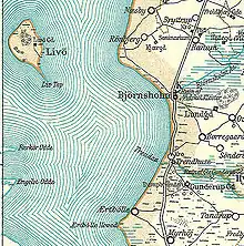 Bjørnsholm Bay (Danish: Bjørnsholm Bugt) is a bay in the Limfjord, along Himmerland's west coast, 10–20 kilometres (6–12 mi) southwest of Løgstør, Denmark. The bay is named after the estate of Bjørnsholm and extends approximately 9 kilometres (5.6 mi) from the hamlet of Rønbjerg in the north to the cliffs at Ertebølle in the south. Near Bjørnsholm and the Vitskøl monastery, Bjørnsholm Å (Bjørnsholm Stream) runs into the bay, and almost four kilometers to the south Trend Å (Trend Stream) has its mouth at Trend, where there is a cottage area. Nearby in the Limfjord is the island of Livø, whose southeastern tip, Livø Tab, almost reaches the bay.[1]