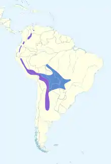 - P. a. aureoventris, breeds in Peru's Puno Province, western and southern Bolivia, and northwestern Argentina. In the austral winter, expands int west-central Brazil and northern Paraguay.