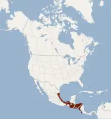 Black-winged little yellow bats are found along much of the eastern coast of Mexico, as far north as southern Tamaulipas, and along the Pacific coast in Chiapas. They are also found across most of Honduras, Guatemala and Belize, in northern and western Nicaragua and in north-western Costa Rica. They are found only below about 1,500 m (4,900 ft), but otherwise inhabit almost every available habitat, with a slight preference for deciduous forest.[1]