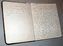 The portion of the journal account that is of particular interest begins in the second of the seven journals, on the night of 12 November 1913. Jung's motivation was to conduct a difficult "experiment" on himself consisting of a confrontation with the contents of his mind, paying no heed to the daily occurrences of his ordinary life. The journal entries continue over several following years and fill the next six notebooks. In these notebooks Carl Jung recorded his imaginative and visionary experiences during the transformative period that has been called his "confrontation with the unconscious."[1] This ledger of experiences was the foundation for the text of Jung's Red Book: Liber Novus. The majority of the journal entries were made prior to 1920, however Jung continued to make occasional entries up until at least 1932.[2] Though the "Black Books" are referenced and occasionally quoted by Sonu Shamdasani in his editorial to The Red Book: Liber Novus,[3] the journals have otherwise previously been unavailable for academic study.[4]
