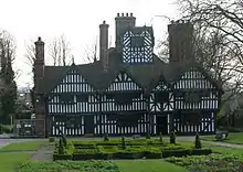 A few Black Country places such as Wolverhampton, Bilston and Wednesfield are mentioned in Anglo-Saxon charters and chronicles and the forerunners of a number of Black Country towns and villages such as Cradley, Dudley, Smethwick, and Halesowen are included in the Domesday Book of 1086.[32] At this early date, the area was mostly rural. A monastery was founded in Wolverhampton in the Anglo-Saxon period[32] and a castle and priory was built at Dudley during the period of Norman rule.[33] Another religious house, Premonstratensian Abbey of Halesowen, was founded in the early 13th century.[34] A number of Black Country villages developed into market towns and boroughs in the twelfth and thirteenth centuries, notably Dudley, Walsall and Wolverhampton.[8] Coal mining was carried out for several centuries in the Black Country, starting from medieval times,[35] and metalworking was important in the Black Country area as early as the 16th century spurred on by the presence of iron ore and coal in a seam 30 feet (9 m) thick, the thickest seam in Great Britain, which outcropped in various places. The first blast furnace recorded in the Black Country was built at West Bromwich in the early 1560s.[36] Many people had an agricultural smallholding and supplemented their income by working as nailers or smiths, an example of a phenomenon known to economic historians as proto-industrialisation. In 1583, the accounts of the building of Henry VIII's Nonsuch Palace record that nails were supplied by Reynolde Warde of Dudley at a cost of 11s 4d per thousand.[37] By the 1620s "Within ten miles [16 km] of Dudley Castle there were 20,000 smiths of all sorts".[38]