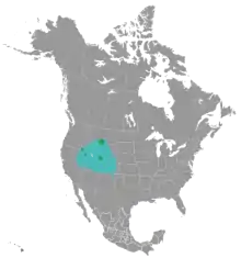 The black rosy finch's breeding habitat is mountain areas above the tree-line, amongst alpine rocks and cliffs. Because of this it is one of the least studied birds in North America.[3] Its distribution range is between that of the grey-crowned rosy finch (L. tephrocotis), which is located to north and west, and the brown-capped rosy finch (L. australis), which is located to the south and east.[3]