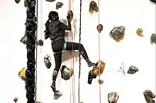 - In February 2017, New York-based artist Baseera Khan staged a performance titled "Braidrage" at Participant Inc., New York, that involved her using ropes to climb a rock wall that she had installed in the gallery. As costume for the 45-minute performance, the artist wore a black, full-body leotard and coated her face, hands, and feet with a dry black susbtance.[51]