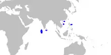 | Range of blackfin gulper shark (in blue) | |