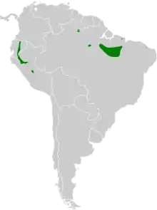 Its natural habitats are subtropical or tropical moist lowland forests and subtropical or tropical moist montane forests.