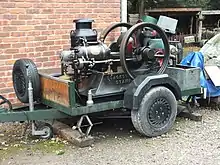 In 1912 they developed a new internal combustion engine that ran on vaporising oil and was fired by a spark. It did not need a hot bulb like most engines of the time. By 1919 they had mounted a 25 hp 3-cylinder version in a crawler tractor, which they built till 1925. In 1921 they made a narrow gauge petrol rail locomotive using the same 3-cylinder 25hp engine. This was a 3 to 4 ton locomotive (depending on the gauge required), and was marketed by James & Frederick Howard - who started making their own locomotives in 1923.[8]