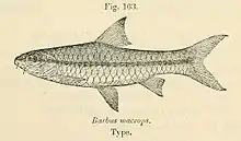 The blackstripe barb (Enteromius macrops) is a species of cyprinid fish in the genus Enteromius which is widely distributed in West Africa where it is harvested for human consumption.[1]