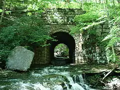 The Western Maryland Railway's Black Fork Grade, which once ran the length of the canyon, has been converted into a hiking trail, the 12.2-mile (19.6 km) Blackwater Canyon Railroad Grade Trail (USFS Trail 115), which connects with the Allegheny Trail near its northern end. The trail crosses three major tributaries on culverts that feature picturesque views of cascades: Tub Run at about 3 miles (4.8 km), Big Run at 4 miles (6.4 km) and Flatrock Run at 5.5 miles (8.9 km).[1]