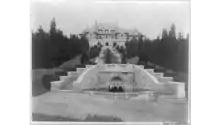 Blairsden was built between 1897 and 1903 for Clinton Ledyard Blair (1867–1949), an American investment banker. It was designed by the prominent architectural firm of Carrère and Hastings.[4] Blair spared no expense in building Blairsden, including leveling off the mountain, building a funicular to shuttle building materials and later guests up and down the terraced mountain and purchasing trees and shrubs aged 25-50 years old, as he did not wish "to wait for things to grow."[5] Blairsden also included a 300-ft reflecting pool decorated with a surround of busts of the Roman Emperors. The household employed a large staff of over 70 to support the household and grounds.[5]