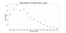 Blanchard was laid out in 1879, and a post office was established that same year. It was incorporated as a town in 1880.[5]