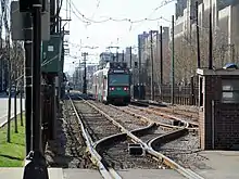 The pocket track is also used to short turn westbound service from the central subway, such as when the B branch is not operating due to maintenance, accidents, or weather conditions. Run as Directed (RAD) trains, which provide additional capacity in the subway during peak periods, often operate from Blandford Street. RAD service began on January 1, 1977 and was intensified from July 24, 1982 to September 10, 1982 when the C branch was closed for maintenance.[2] During the closure of the Huntington Avenue subway, beginning December 28, 1985, regular scheduled service was run between Blandford Street and Lechmere. On July 26, 1986 this reverted to RAD service, which was intensified on December 26, 1986 with use of other cutbacks (which, unlike Blandford Street, do not have pocket tracks).[2] RAD service was greatly reduced on September 10, 1988, but increased again from Blandford Street on September 1, 2008.[2]