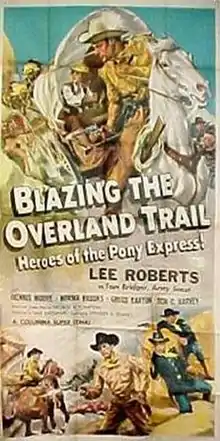 Blazing the Overland Trail is a 1956 American Western Serial film directed by Spencer Gordon Bennet and starring Lee Roberts. It was the 57th and last serial produced by Columbia and the last American serial ever produced by any studio (either major or minor). Republic Pictures, the only other serial-producing US studio in the mid 1950s, had ceased its serial production the previous year with King of the Carnival.