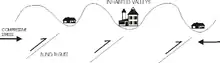 As shown in the diagram, a weak plate under compression generally forms thrusting sheets, or overlapping sliding sections. This can form a hill and valley landform, with the hills being the strong sections, and the valleys being the highly disturbed thrust faulted and folded sections. After a long period of erosion the visible landscape may be flattened, with material eroded from the hills filling up the valleys and hiding the underlying hill-and-valley geology. The valley rock is very weak and usually highly weathered, presenting deep, fertile soil; naturally, this is the area that becomes populated. Reflection seismology profiles[2] show the disturbed rock that hides a blind thrust fault.