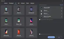 Blisk comes with a pre-installed set of phones, tablets, laptops, and desktops that can be simulated, making it easy for developers to test how their code renders across multiple devices and browsers. The feature can be used to compare how the design responds to different screen resolutions and pixel ratios.[12] Device simulation enables developers to test the page behavior in various environments without having to rely on actual devices. Blisk's devices natively support original screen resolution, portrait or landscape orientation, device pixel ratio, user agent, and touch events.[13] As of May 2019, Blisk supports more than 50 devices for web development and testing needs.[13]