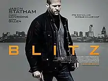 Blitz is a 2011 British action thriller film directed by Elliott Lester and starring Jason Statham, Paddy Considine, Aidan Gillen and David Morrissey.[2] The film is based on the novel of the same name by Ken Bruen, which features his recurring characters Detective Sergeant Tom Brant and Chief Inspector James Roberts.[3] The narrative follows a violent police officer trying to catch a serial killer who has been murdering police officers in South East London.