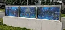 The station features the artwork Three Sisters by Haudenosaunee/ Anishinaabe artist Lindsey Lickers and Katharine Harvey, having a digitally printed glass wall with images narrating the history and culture of the First Peoples.[2]