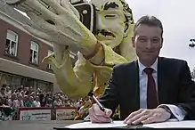 Bloemencorso Zundert is the largest flower parade in the world entirely made by volunteers.[1] The parade takes place on the first Sunday of September, in Zundert, Netherlands. The floats are large artworks made of steel wire, cardboard, papier-mâché, and flowers. In the Bloemencorso Zundert, only dahlias are used to decorate the objects and it takes thousands of them just to cover one float. Around 8 million dahlias are needed for the entire Corso. Of these, around 6 million are cultivated in Zundert.[2] It was founded in 1936.