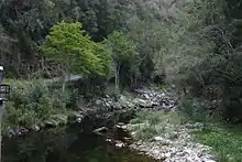 The Bloukrans Pass is a pass through the ravine of the Bloukrans River on the R102 road between Plettenberg Bay and Jeffreys Bay in South Africa. The Bloukrans River forms the boundary between the Western Cape and Eastern Cape provinces. The pass no longer serves as the main route, as it has been bypassed by the Bloukrans Bridge which carries the N2 national road. The pass underwent major repairs during 2011.[1][2]