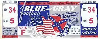 The Blue–Gray Football Classic was an annual American college football all-star game held in Alabama, usually in late December and often on Christmas Day. The brainchild of Alabama college football legend Champ Pickens,[1] the contest began in 1939 and was held annually through 2001, with the exception of 1943 due to World War II.[2]
