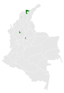 The blue-billed curassow is found only in northern Colombia. It has a highly fragmented range, with small populations between La Guajira and Magdalena Departments south to Antioquia and Boyacá Departments. It inhabits undisturbed forest in the tropical and upper tropical zones, mostly from near sea level to 600 m (2,000 ft) but at least formerly as high as 1,200 m (3,900 ft).[4]