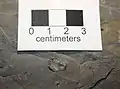Trace fossils are common. Examples include tetrapod footprints,[9][10] fish fin trails, arthropod trackways,[11] wave ripples, mud cracks, rain drops, and bromolites - including coprolites, fossilized dung.[12]