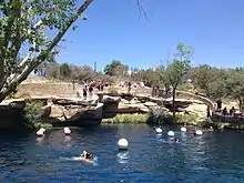 The Blue Hole of Santa Rosa, or simply the Blue Hole, is a circular, bell-shaped pool or small lake located along Route 66 east of Santa Rosa, New Mexico that is a tourist attraction and swimming venue, and one of the most popular dive destinations in the US[1] for scuba diving and training. The Blue Hole is an artesian well and cenóte that was once used as a fish hatchery.[2]
