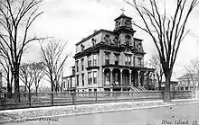 The house was built by Carlton Wadhams (1810–1891), who came to Blue Island in 1839 from Goshen, Connecticut, and farmed on land north of the village until he opened the American House Hotel (building extant) in 1844. During his time in Blue Island, Wadhams made his first fortune as the owner of the hotel and as a cattle dealer, staying until c. 1857 when he sold his holdings and moved to South Bend, Indiana. In South Bend he was one of the founders of the Dodge Manufacturing Company and of the First National Bank, where he was a director until his death.[59] Wadhams sold the house along with all of the property on which it was located, which included the American House and all of the land between what is today Western Avenue, Maple Avenue, Burr Oak Avenue and Vermont Street to Joshua Palmer Young (1818–1889),[60] who, by himself beginning in 1848 and in a partnership with John K. Rowley that was established in 1866, played an important role in the development of the Chicago communities of Beverly Hills, Morgan Park,[61] Near West Side, Washington Heights and Englewood,[62] as well as the suburban communities of Blue Island, South Lawn (now Harvey),[63] Homewood and South Holland.