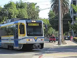 The first light rail line of the RT opened March 12, 1987.[2] Initial service commenced between Watt/I-80 and 8th & O stations only for the first six months. It was extended to Butterfield that same year on September 5.[2] In all, it was an 18.3-mile (29.5 km) route between Watt/I-80 station in North Sacramento, through downtown, and continuing east on Folsom Blvd. to Butterfield Way station. It was built at a cost of $176 million USD ($420 million adjusted for inflation), which included the cost of vehicles and maintenance and storage facilities. Much of the line, when it was first built, was single-tracked, though improvements over the 1990s allowed much of the original system to be double-tracked. The line was built mainly using portions of the Sacramento Northern Railroad and Sacramento Valley Railroad right-of-ways, coupled with use of structures of an abandoned freeway project. A limited portion of the route runs on streets, mainly in downtown Sacramento.