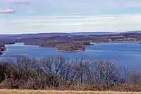 Blue Marsh Lake is an artificial lake located northwest of the city of Reading, Pennsylvania, USA and managed by the U.S. Army Corps of Engineers Philadelphia District. It is in western Berks County, fed into by the Tulpehocken Creek. The main span of the lake is along the border between Bern and Lower Heidelberg Townships. However, the northwesternmost portions lie in the more sparsely populated North Heidelberg and Penn Townships. In the middle of the lake is a large, uninhabited island (claimed by Bern Township). The lake is a popular recreation area in the summer, where people can fish, swim, and boat. It has 36 miles of trails and 1,147 acres of water.[1] It was built and is operated by the U.S. Army Corps of Engineers, Philadelphia District.
