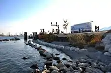 The Blue Water River Walk is a nearly one mile stretch of land along the St. Clair River in Port Huron, Michigan. The River Walk begins just south of the mouth of the Black River and continues to the Seaway Terminal. It is less than a mile south of the Blue Water Bridge to Sarnia and the southern end of Lake Huron.[1] The Blue Water River Walk includes a naturalized shoreline made up of natural rocks, boulders and pebbles. Native plants, flowers, trees and shrubs growing in a natural landscape make up the habitat onshore. The River Walk provides a place for natural habitat to thrive and for visitors to take a walk along the shoreline and enjoy looking for turtles, having a picnic, and watching freighters.[1]