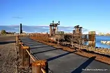 Along the Blue Water River Walk is an old railroad ferry dock. This ferry dock has been completely restored and made available as a place to view the St. Clair River. The decking is made of Brazilian walnut and new railings, lighting, and stairs have been added. An old functioning railroad signal light welcomes visitors to the ferry dock.[1]