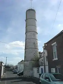 The modern town of Blyth began to develop in the first quarter of the 18th century. Up until 1716, the land around the Blyth area—the Newsham Estate—was owned by the Earls of Derwentwater, but when the third Earl, James Radclyffe, was executed for his part in the Jacobite rising of 1715, the land was forfeited to the crown.[3] On 11 July 1723, the Lordship of Newsham was put up for sale by the Commissioners of Forfeited Estates at their office in the Inner Temple, London.[12] The land was bought by Matthew White and his brother-in-law Richard Ridley.[3] From the 12th century, most port activities were on the north side of the river, but under White and Ridley the first new quays and houses were built on the south side, and from here the port began to prosper.[12] By 1730, a coaling quay, a ballast quay, a pilots' watch house and a lighthouse had all been built at Blyth harbour. In 1765 the first breakwater was constructed, and in 1788 the first staith with an elevated loading point was erected.[13] Deep mines were sunk at Cowpen Colliery and Cowpen Square in 1796 and 1804 respectively,[11] and by 1855, a quarter of a million tons of coal was being shipped from Blyth, rising to three million tons by 1900.[3] The only industry not to survive during this prosperous time was the salt trade, which was heavily taxed during the 18th and early-19th centuries. During the Napoleonic Wars, the tax was increased to provide funds for the military and, even though the tax was abolished in 1825, the industry went into terminal decline. Having had fourteen salt pans at the beginning of the 18th century, exporting over 1,000 tons of salt annually, Blyth's salt industry closed in 1876, with the destruction of the last salt pan.[3]