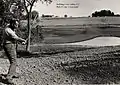 Bob Fry hitting first golf ball at newly built Crow Valley Golf Club