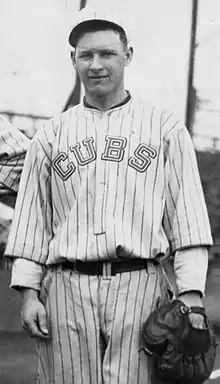 O'Farrell was born in Waukegan, Illinois where he grew up a Chicago White Sox fan. He signed with the Cubs in 1915 after playing an exhibition game for his local semi-professional team.[3] His first manager was former catcher, Roger Bresnahan, who helped O'Farrell develop his catching skills.[4] After a season on the bench, O'Farrell was sent to Three-I League where he spent two years before returning to the Cubs for the 1918 season.[5] He served as backup catcher working behind Bill Killefer as the Cubs went on to claim the 1918 National League pennant before losing to the Boston Red Sox in the 1918 World Series.[6] O'Farrell went hitless in three at bats during the series.[7]