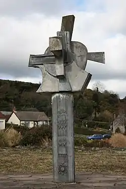 Sloan held a three-person show at the Arts Council of Northern Ireland Gallery in 1974 where he showed drawings and pastels, which one critic labelled as "unresolved and overworked". Fellow exhibitors were Lawson Burch and Vernon Carter.[9] Disappointed by the lack of casting facilities in Northern Ireland, Sloan set-up his own casting facilities in the late 1970s,[10] which he maintained until 1982.[7] Several trips to North America, including visits to the Tenth International Sculpture Conference in Toronto in 1978, the Foundry Workshop, Baltimore in 1980, and the Washington Sculpture Conference in the same year,[11] inspired Sloan to expand his foundry with financial assistance provided by the Arts Council of Northern Ireland. His American excursions also exposed Sloan to new influences in large sculptural works by Nancy Holt, Richard Serra and Mark Di Suvero.[12] Sloan participated in the Ulster Workshop at Documenta 6, Kassel, Germany in 1977, with performance and intallation work.[10] In 1979 Sloan debuted with the Independent Artists where he showed two works, an aluminium piece entitled Even Smaller Dancer, and Confined in cast brass. In the following year he showed at the Oireachtas for the first time with Crois Cheilteach.[13]