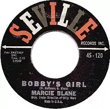 "Bobby's Girl" is a song and single written by Gary Klein and Henry Hoffman. The original was performed by American teenage singer Marcie Blane, and became a #3 hit on the US charts. A near-simultaneous cover by British singer Susan Maughan was the hit in the UK, coincidentally also reaching #3 on the UK charts.[2][3] Both Blaine and Maughan are one-hit wonders; for both these artists, "Bobby's Girl" marked their only appearance on a national top 40 chart.