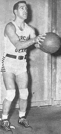 He went back to the ABL and was again the league's scoring leader, returned to the Celtics for another season, then settled down for a while with the Ft. Wayne Zollner Pistons of the National Basketball League in 1941. From 1941 to 1946 he was at his peak. He improved his shot and for the first time, his free throw percentage rose near or around 80%. He continued to get more accurate and dangerous while keeping his legendary range. The Pistons won over 80% of their games and made five consecutive NBL finals appearances. They won NBL titles in 1944 and 1945, as well as the World Professional Basketball Tournament in Chicago. At the same time, his popularity soared, and he appeared at a war bond rally alongside Jack Dempsey and Martha Raye.[1]
