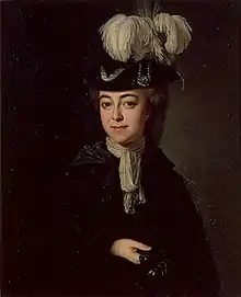 The Russian Empress gave birth to her only official illegitimate son[1] on April 11, 1762, several months before her ascension to the throne. Catherine had to conceal the pregnancy. When the due date came, to distract Peter III, her trusted servant Vasily Shkurin was ordered to burn his own house, knowing that the Emperor had a passion to watch the fires.[2] The child was named Aleksey after his uncle and godfather, Count Aleksey Orlov. He was brought up in Bobriki, a village in the Tula guberniya. On April 2, 1781, Catherine sent him a letter, in which she openly avowed her maternity. She named him Bobrinsky, a surname derived from the estate he lived in. On the 5th day of his reign, Emperor Paul made his half-brother a Count of the Russian Empire and promoted him General-Major. He married Baroness Anna Dorothea von Ungern-Sternberg (1769–1846) and had issue that continues to this day. The first Count Bobrinsky died on June 20, 1813 in his estate of Bogoroditsk, to the east of Tula.