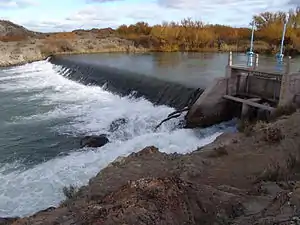 Boca Toma, also called Boca de la Zanja, is a small weir on the Chubut River in Chubut Province, Argentina completed in 1919. It is a wall that causes a steep drop in the river, allowing water to be diverted into irrigation canals. Because the area has very low rainfall, this dam allows irrigation in the river valley.[1] The Boca Toma is located a few kilometers downstream from Dique Florentino Ameghino in Gaiman Department.[2]