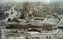 The original Bochum Hauptbahnhof was located at Königsallee, a few hundred metres west of the present railway station. In the Second World War, the station was virtually destroyed in a British bombing raid, along with large parts of the city of Bochum. The reconstruction of the station was required by the city planners enable for changes in the design of the city and for the development of some major roads to cater for a significant increase in the population of the city. Reconstruction of the old station, which was difficult to expand, was abandoned in favour of the development of a station closer to the central city.[5]