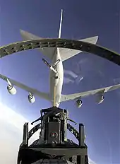 Besides its primary role as an inflight aircraft refueler, the KC-135, designated NKC-135, has assisted in several research projects at the NASA Armstrong Flight Research Center at Edwards Air Force Base, California. One such project occurred between 1979 and 1980 when special wingtip "winglets", developed by Richard Whitcomb of the Langley Research Center, were tested at Armstrong, using an NKC-135A tanker loaned to NASA by the Air Force. Winglets are small, nearly vertical fins installed on an aircraft's wing tips. The results of the research showed that drag was reduced and range could be increased by as much as 7 percent at cruise speeds.[26][27] Winglets are now being incorporated into most new commercial and military transport/passenger jets, as well as business aviation jets.