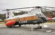 On 22 April 1958, the V-107 prototype performed its maiden flight.[3] In order to garner publicity for the newly developed rotorcraft, it was decided to use the prototype to conduct a series of publicised flight demonstrations during a tour across the United States and several overseas nations. During June 1958, it was announced that the U.S. Army had awarded a contract to Vertol for the construction of ten production-standard aircraft based on the V-107, which were designated YHC-1A.[4] However, this order was later decreased to three helicopters; according to aviation author Jay P. Spenser, the cutback had been enacted in order that the U.S. Army would be able to divert funds for the development of the rival V-114 helicopter, which was also a turbine-powered tandem rotor design but substantially larger than the V-107.[4] All of the U.S. Army's three YHC-1As were powered by pairs of GE-T-58 engines. During August 1959, the first YHC-1A-model rotorcraft conducted its first flight; independently, it was shortly followed by the maiden flight of an improved model intended for the commercial and export markets, designated 107-II.[1]