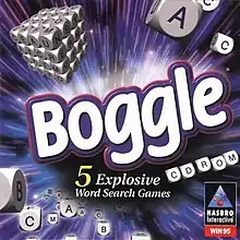Boggle is a word puzzle video game based on the word game of the same name. It was published on September 30, 1997 by Hasbro Interactive,[1] and developed by PCA, Inc. and Third-i Productions. The game was released for Windows 95.[2][3]